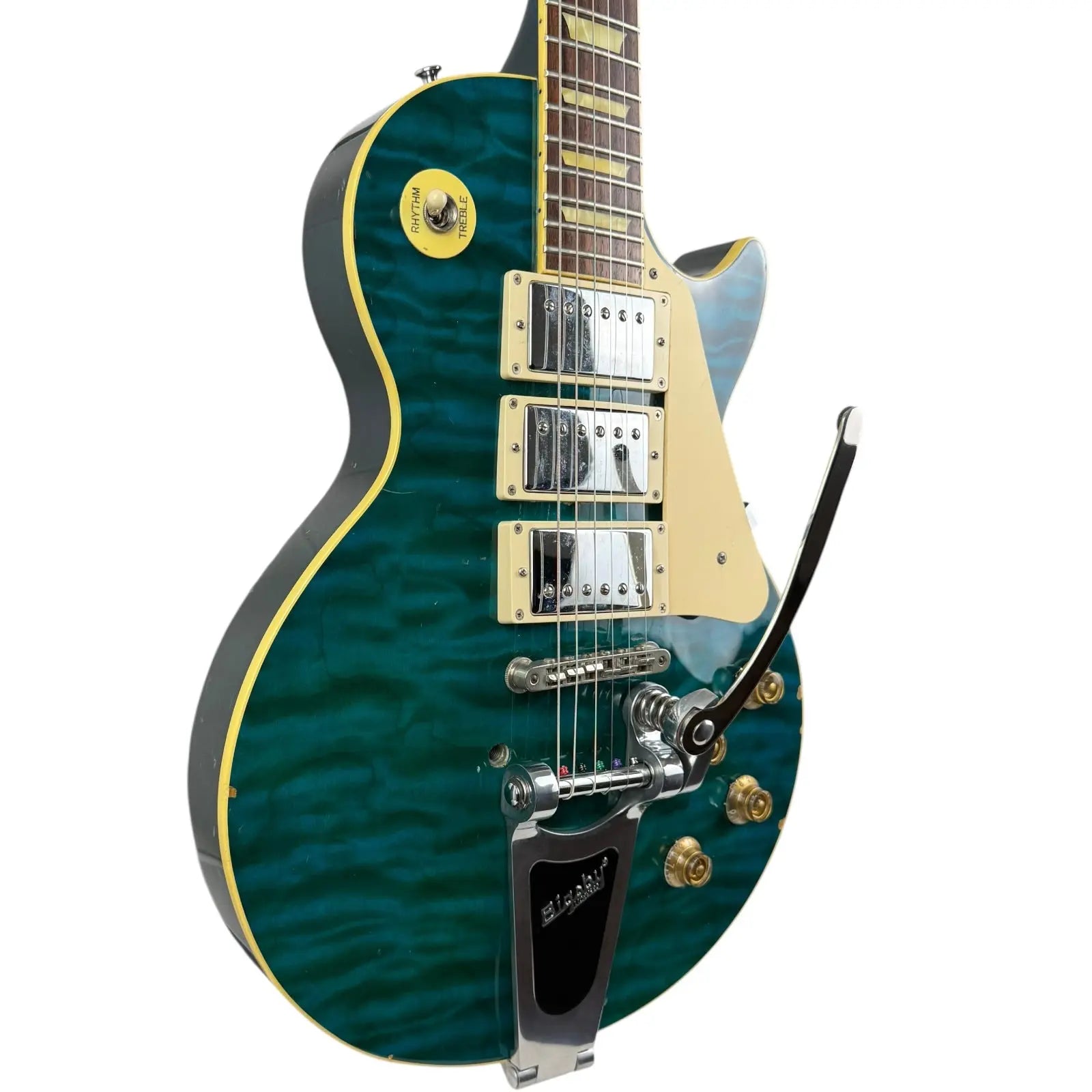 - Nachträglich angebrachtes Bigsby Tremolo.