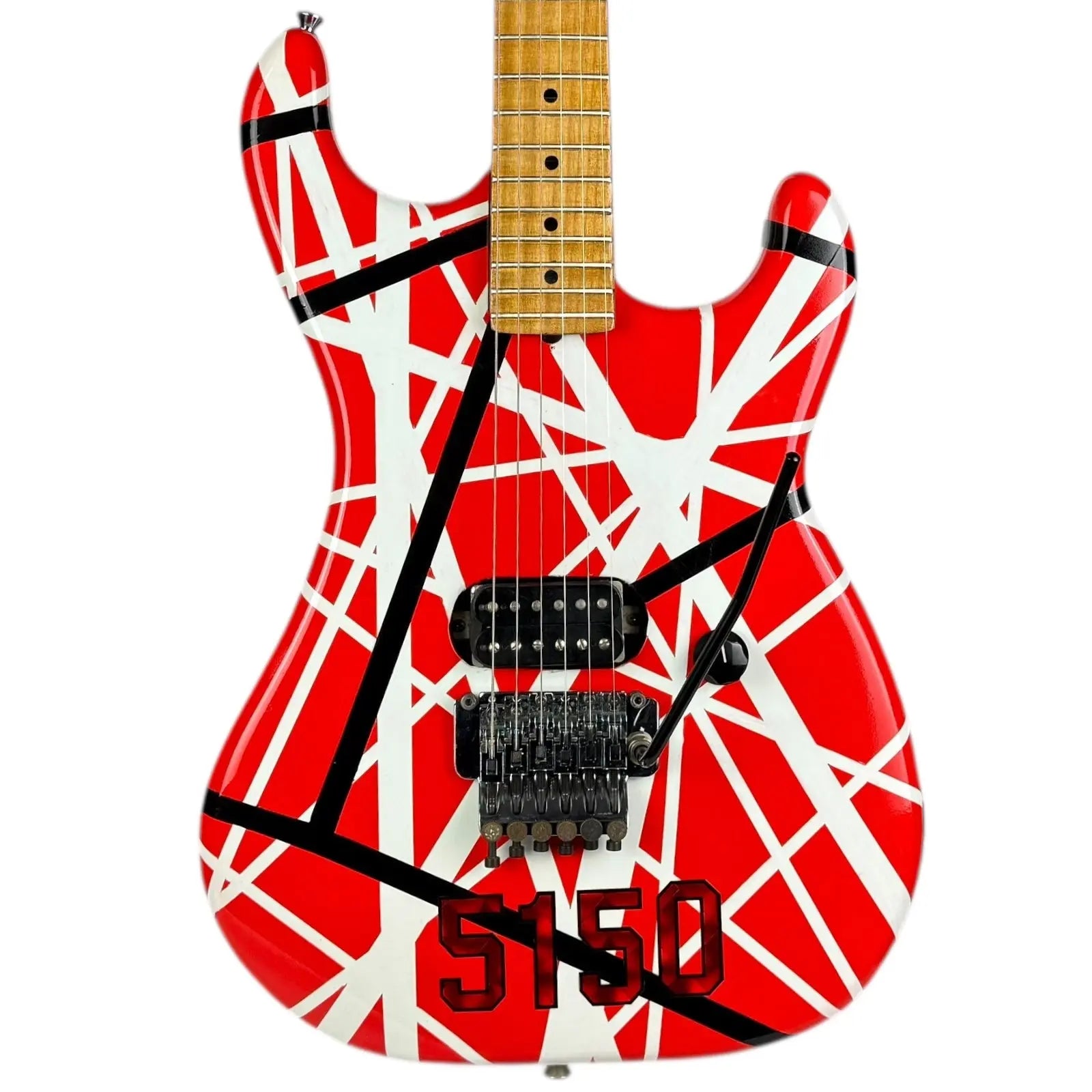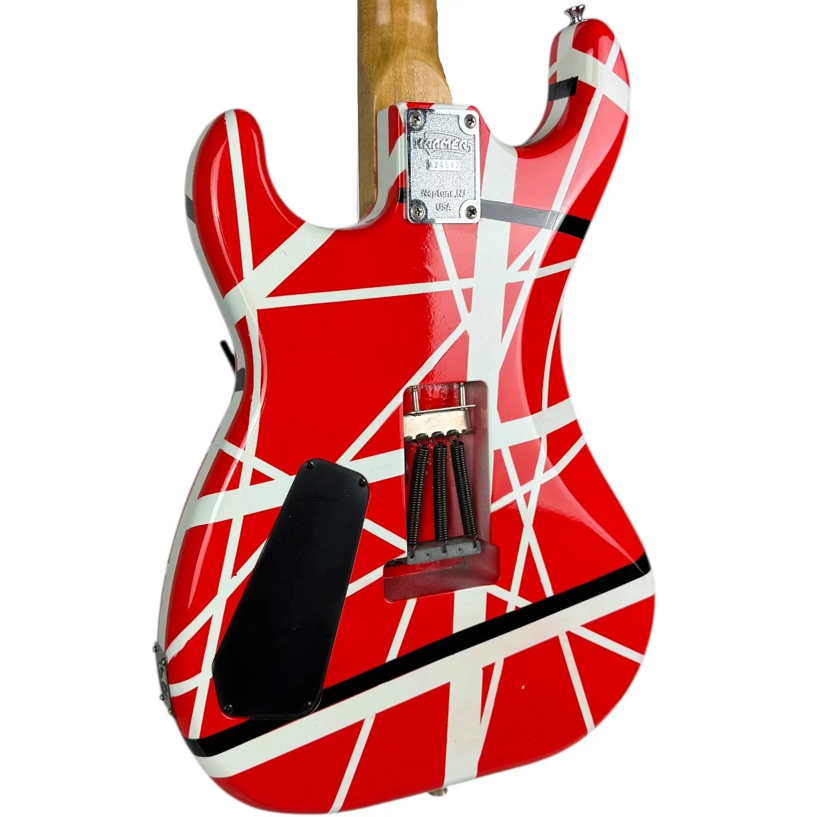 - Guitaren er lakeret i EVH Red Stripes-stil.