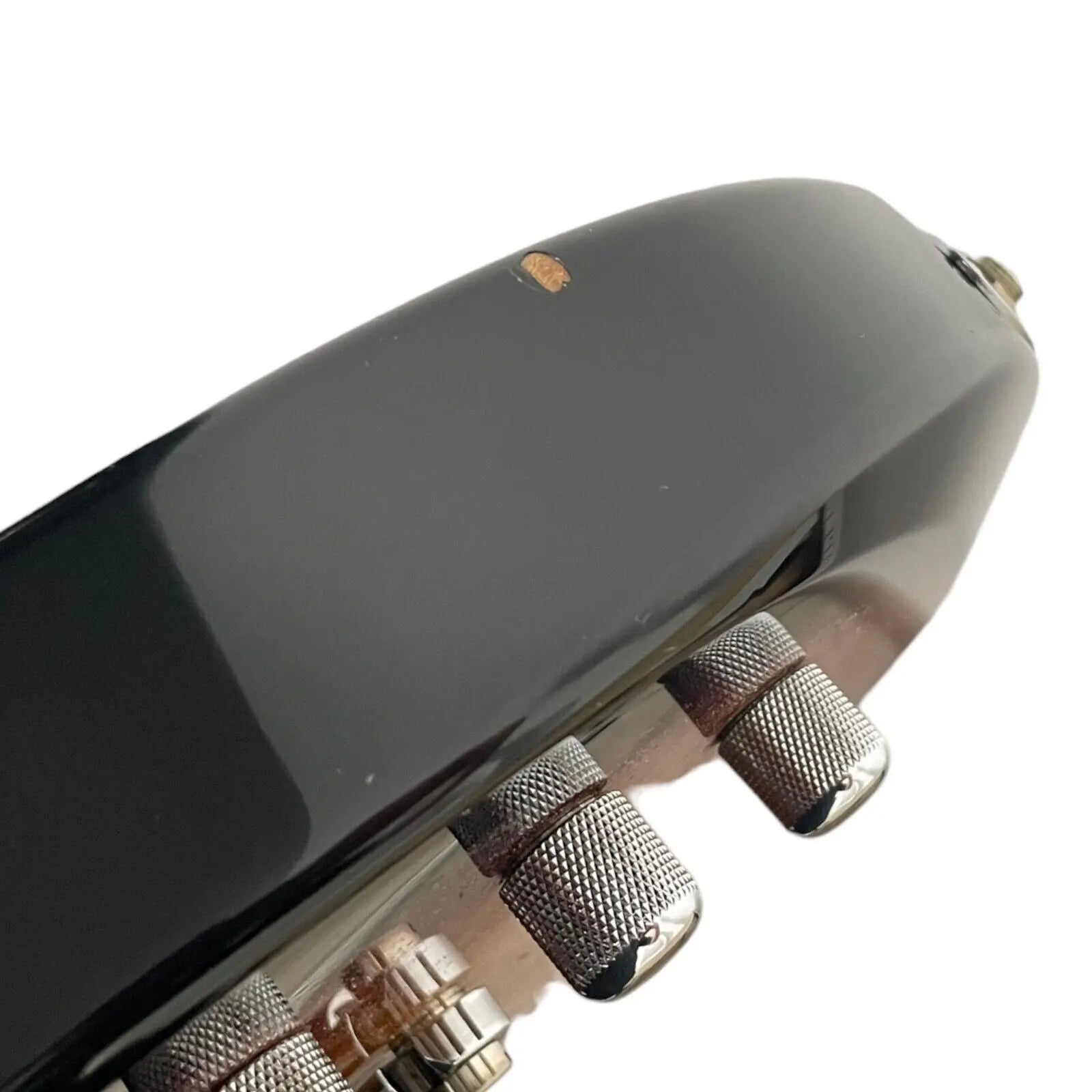 There are slight traces of play on the surface. The frets do show some wear and tear, but provide a comfortable playing feel. A DiMarzio DP103FB is installed on the neck and a DiMarzio USA pickup on the bridge.