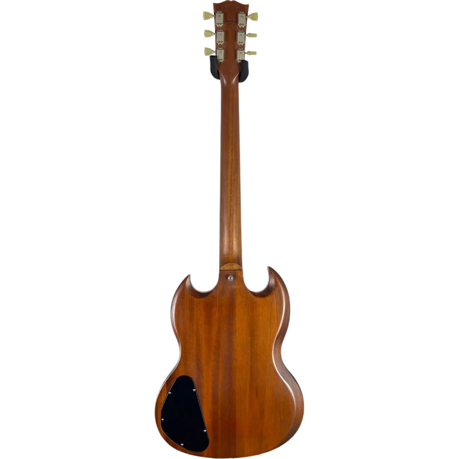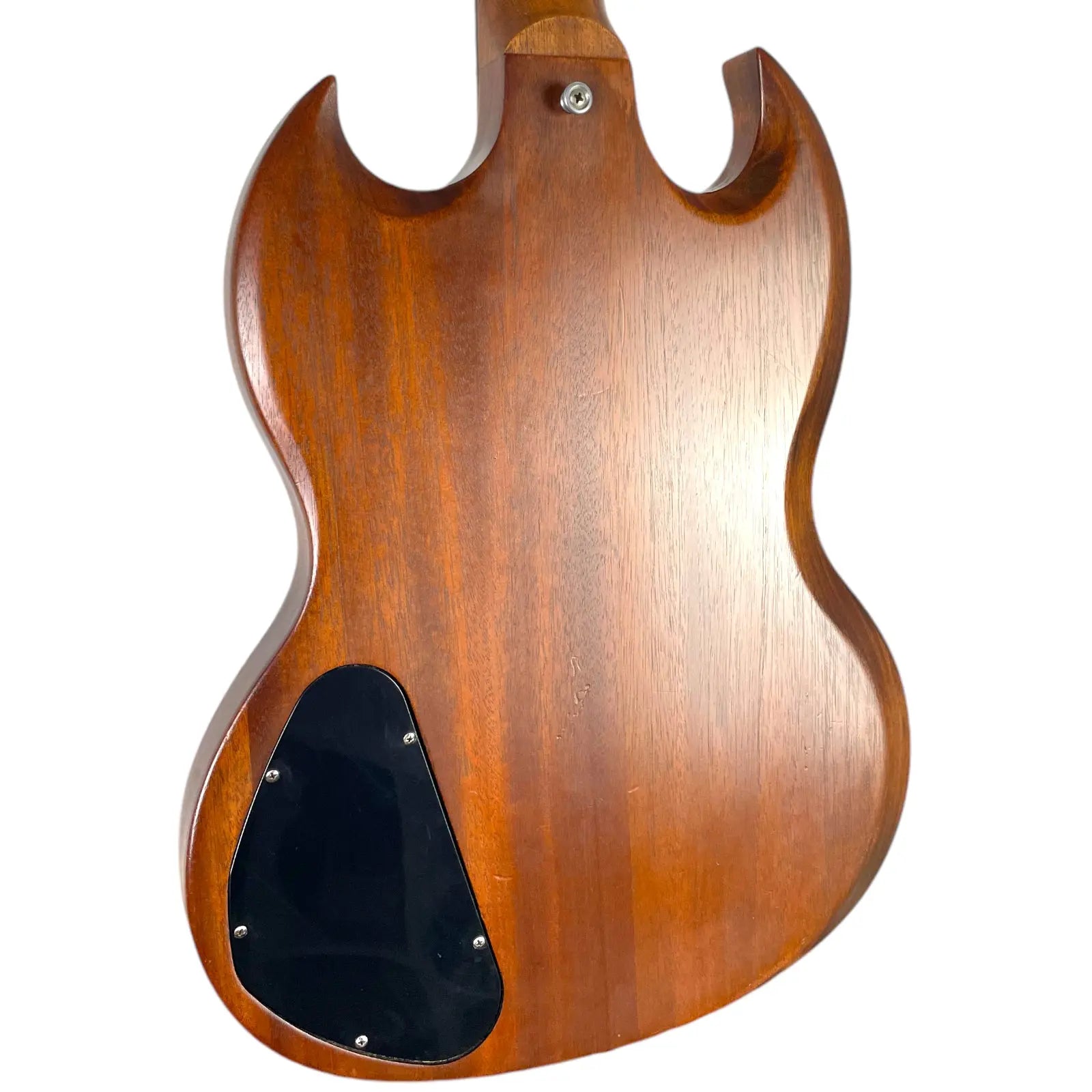 The bridge was replaced with a Bigsby tremolo. Holes were drilled into the body for this.
