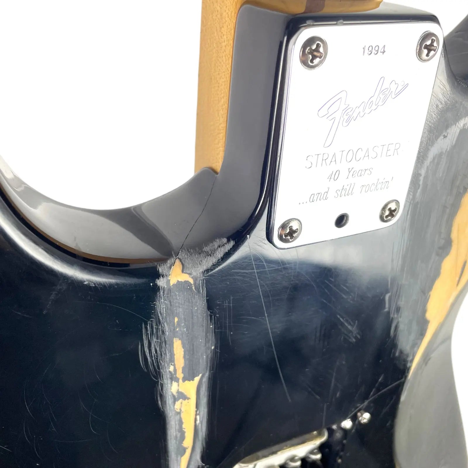 À vendre est une Fender American Standard Stratocaster d'occasion, fabriquée en 1994 aux USA.