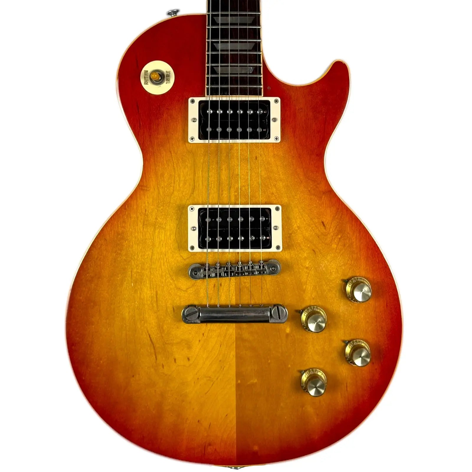 Les humbuckers ont été remplacés par un jeu de Gibson 496R/500T. Les trous de perçage pour le pickguard étaient fermés.