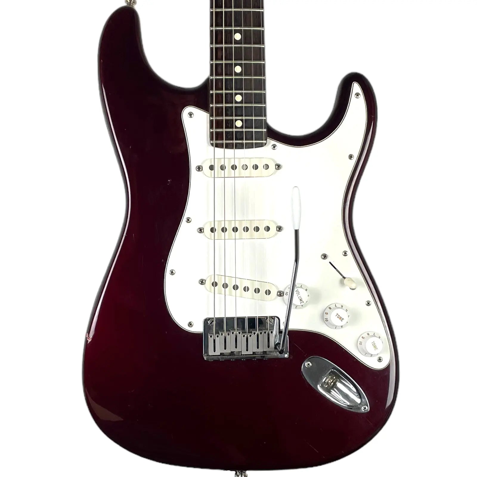 Die Tonabnehmer der Gitarre sind Fender 016730 Singlecoil Pickups. Der Innenraum des Bodys wurde mit Kupferfolie abgeschirmt. Die Potentiometer sowie der 5-Wege Schalter sind original.